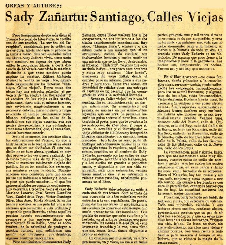 Autores chilenos - Zañartu, Sady