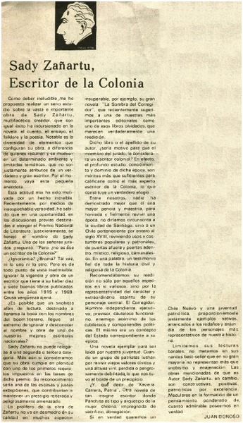 Sady Zañartu, escritor de la Colonia [artículo] Juan Donoso.