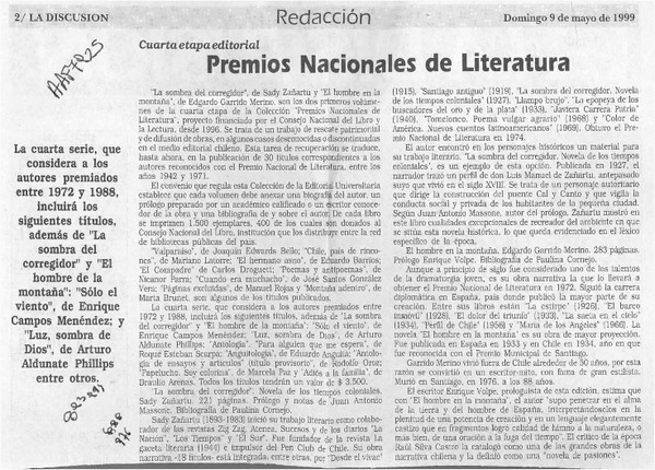 Premios Nacionales de literatura [artículo].