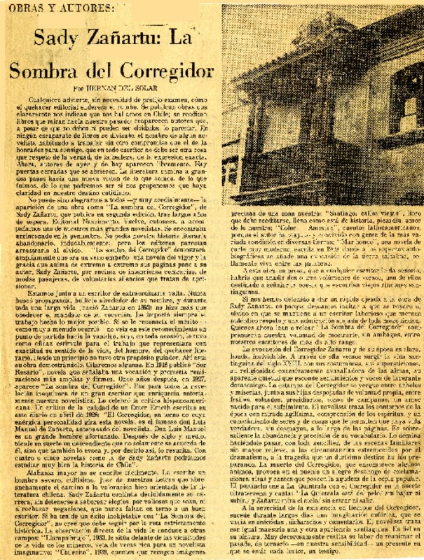 Sady Zañartu: La Sombra del Corregidor [artículo] Fidel Araneda Bravo.