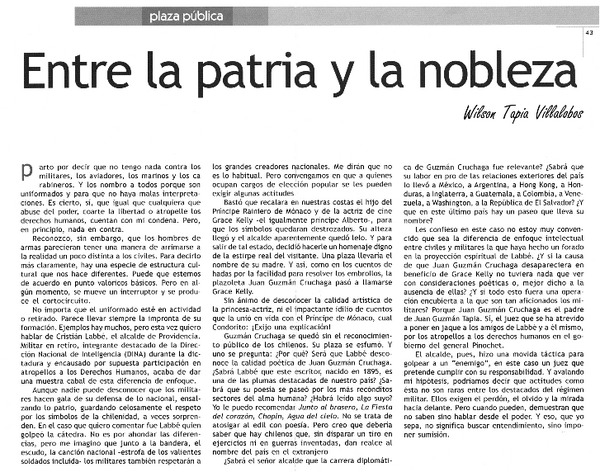 Entre la patria y la nobleza [artículo] Wilson Tapia Villalobos.