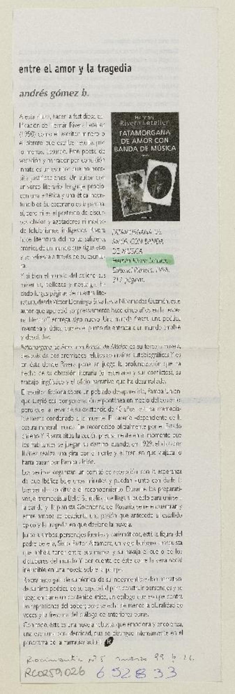Entre el amor y la tragedia [artículo] Andrés Gómez B.