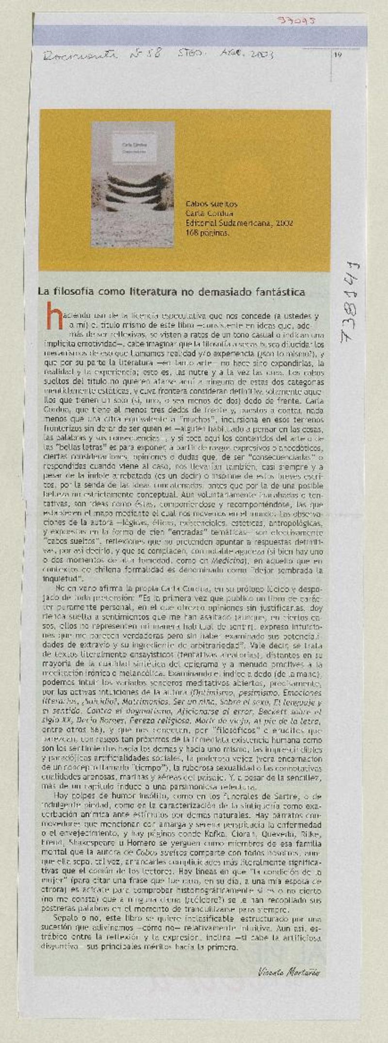 Autoras chilenas - Cordua, Carla - Cabos sueltos