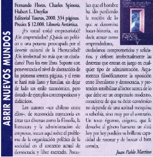 Autores chilenos - Dreyfus, Hubert L. - Abrir nuevos mundos - Flores, Fernando - Spinosa, Charles