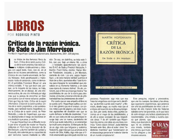 Crítica de la razón irónica. De Sade a Jim Morrison [artículo] Rodrigo Pinto.