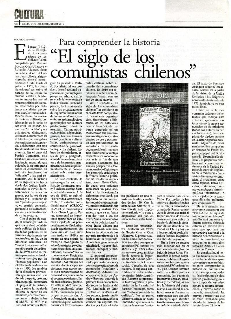"El siglo de los comunistas chilenos" [artículo] Rolando Álvarez.