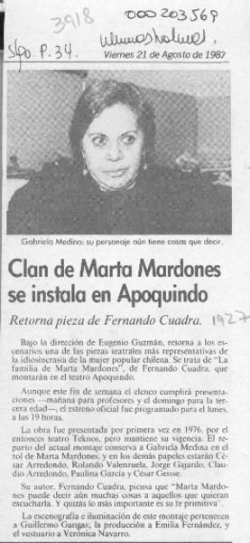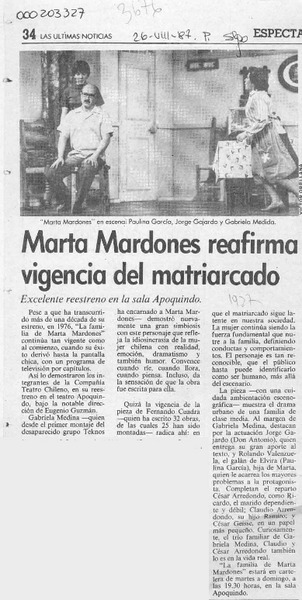 Estrenaron tercer montaje de la obra "La familia de Marta Mardones" [artículo].