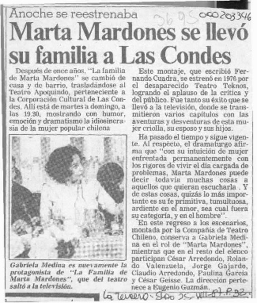 Reestrenan "Familia de Marta Mardones" [artículo].