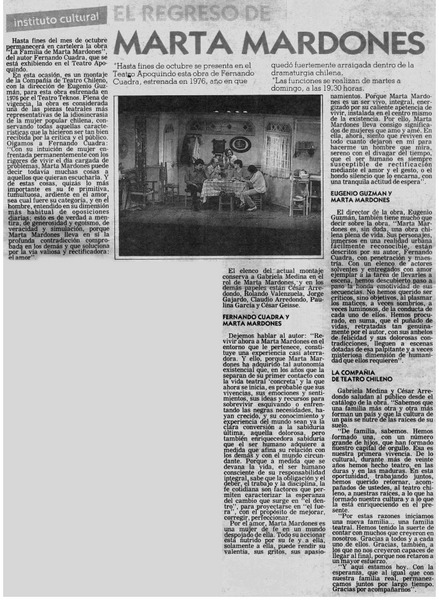 Excelente regreso de "Marta Mardones" [artículo] Italo Passalacqua C.