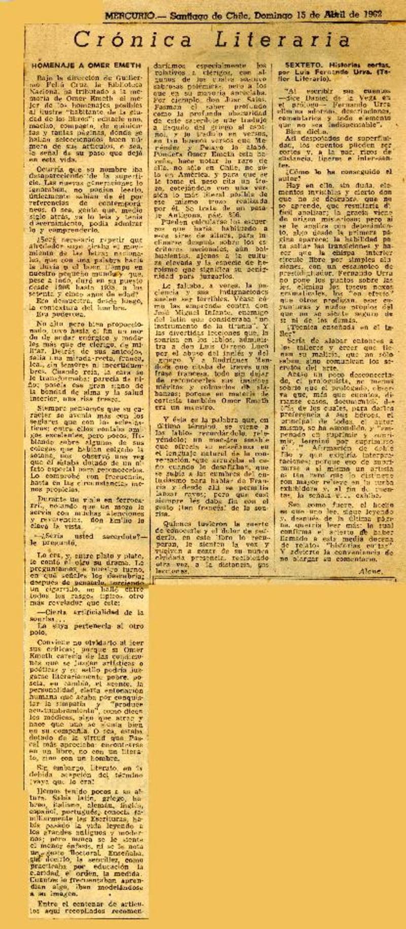 Crónica literaria (Omer Emeth como fundador) [artículo] Alone.
