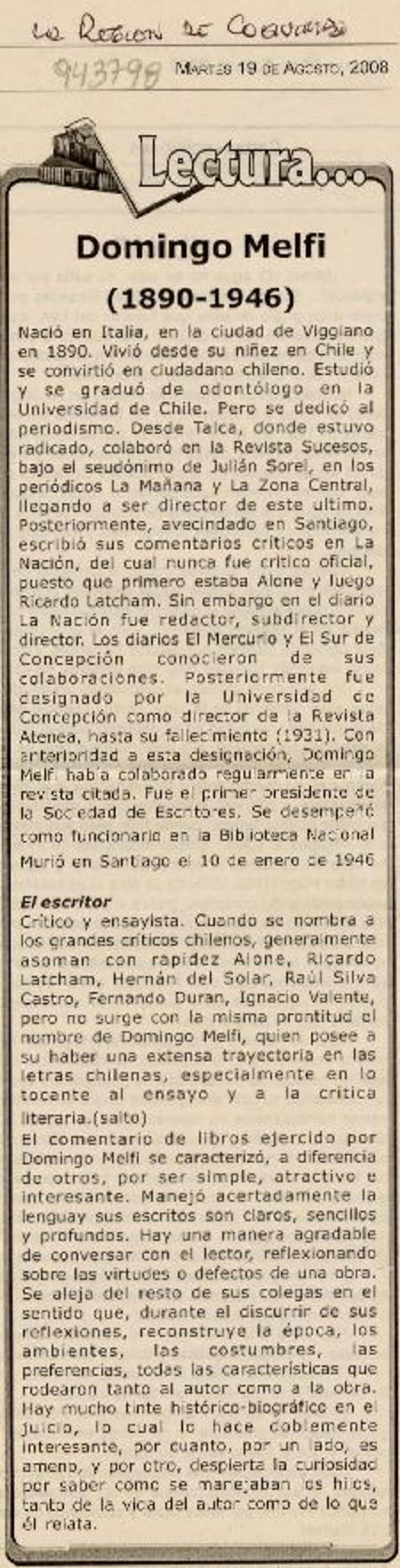 Domingo Melfi o la crítica simpática [artículo] M.R.