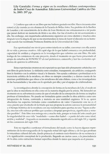 Autoras chilenas - Cruz O., Isabel - Lily Garafulic, forma y signo en la escultura chilena contemporánea