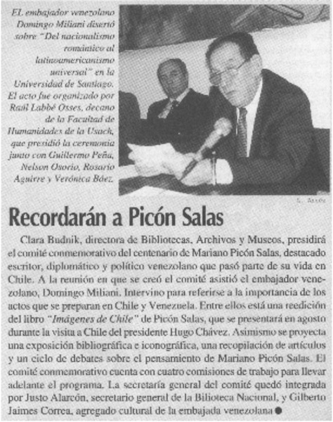 Recordarán a Picón Salas. [artículo]