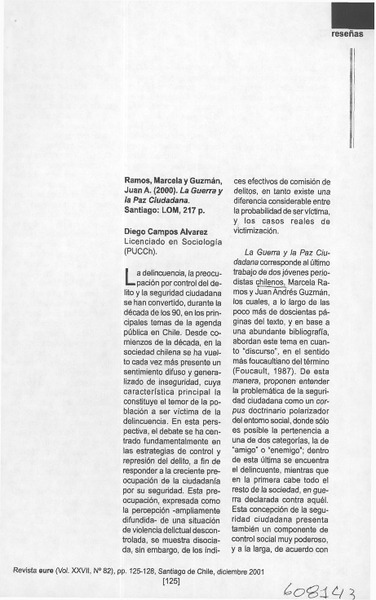 La guerra y la paz ciudadana [artículo] Marcela Ramos A. <y> Juan Guzmán de Luigi