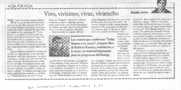 Vivo, vivísimo, vivaz, vivaracho [artículo] Alejandro Zambra.