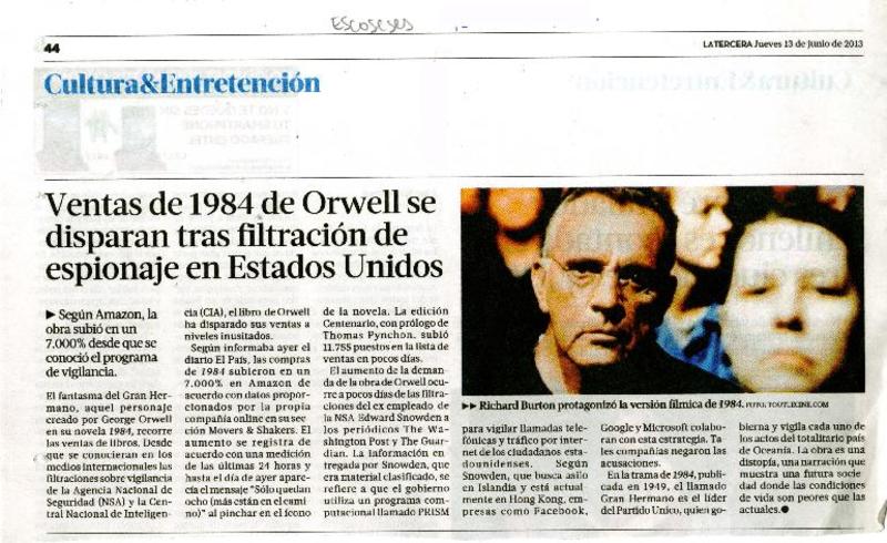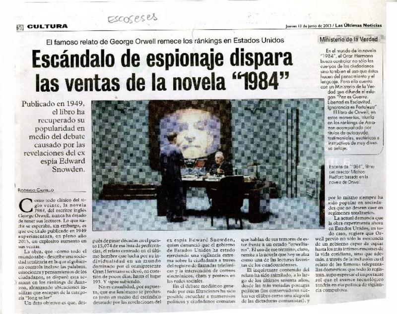 Escándalo de espionaje dispara las ventas de la novela de "1984". [artículo] Rodrigo Castillo.