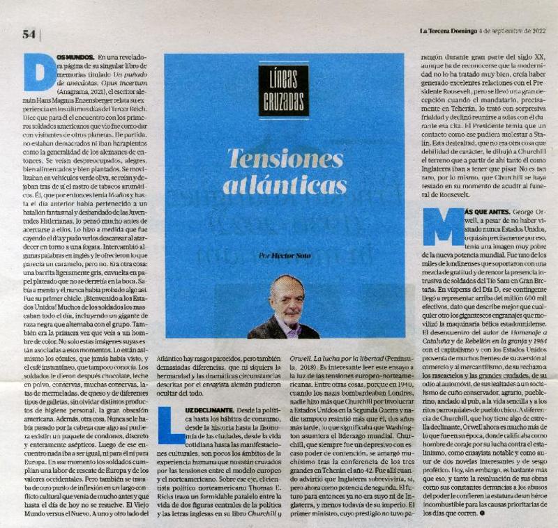 Autores alemanes - Autores estadounidenses - Orwell, George - Autores britanicos - Magnus Enzensberger, Hans - Un puñado de anécdotas - Revelión en la granja - Homenaje a Cataluña - Ricks E., Thomas - Curchill y Orwell