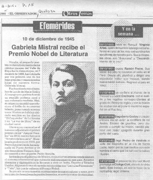 Gabriela Mistral recibe el Premio Nobel de Literatura. [artículo]