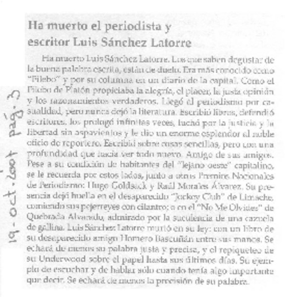 Ha muerto del periodista y escritor Luis Sánchez Latorre [artículo].