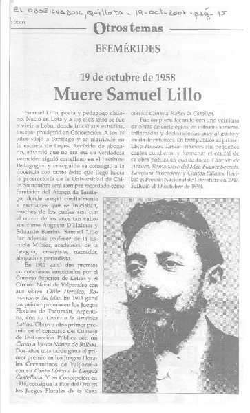 Muere Samuel Lillo [artículo].