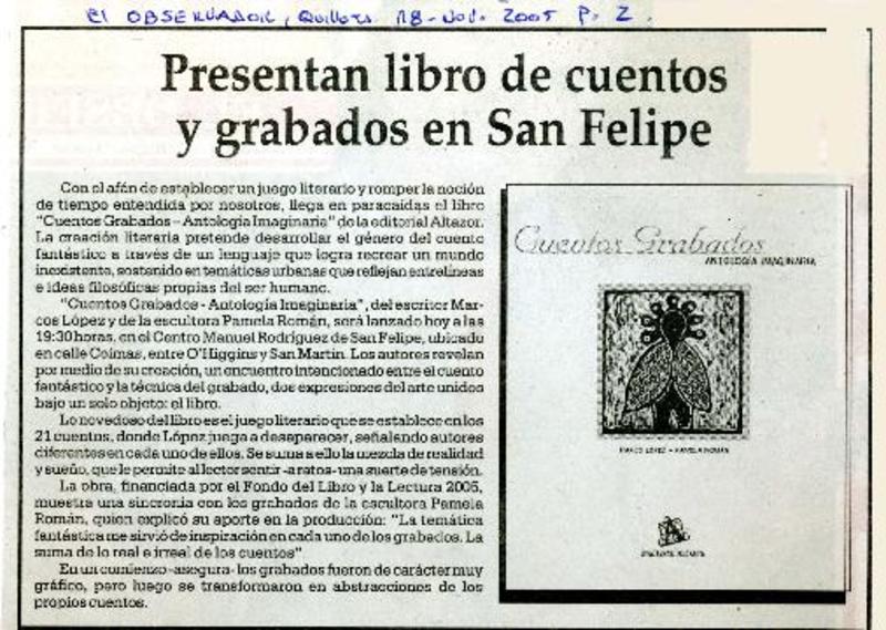 Presentan libro de cuentos y grabados en San Felipe [artículo].