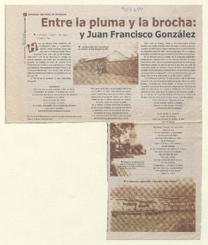 Entre la pluma y la brocha: cuando Víctor Domingo Silva y Juan Francisco González, se encontraron en Limache [artículo] : Fernando Venegas Espinoza.
