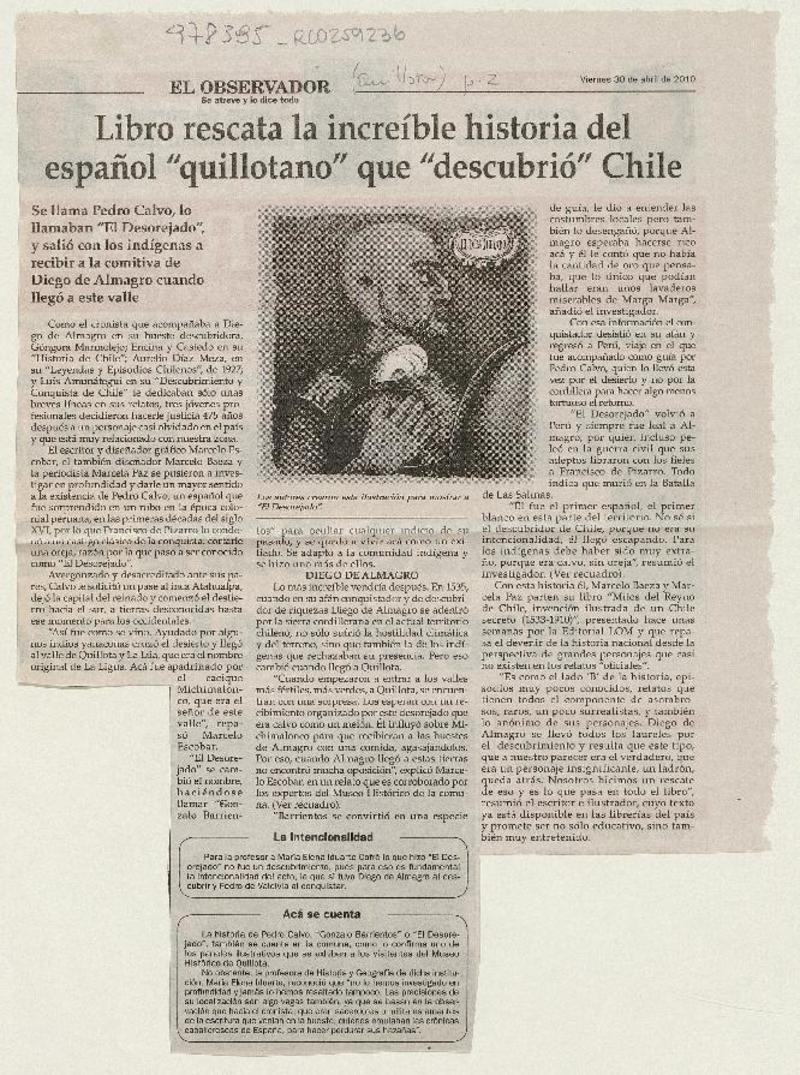 Libro rescata la increíble historia del español "quillotano" que "descubrió" Chile [artículo].