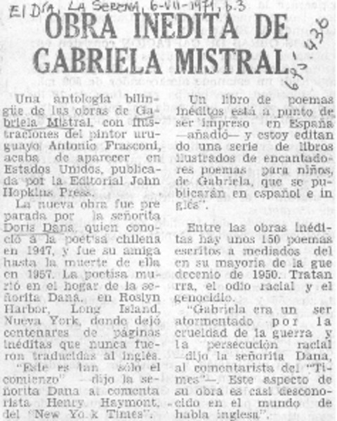 Autoras chilenas - Mistral, Gabriela - Autoras estadounidenses - Dana, Doris