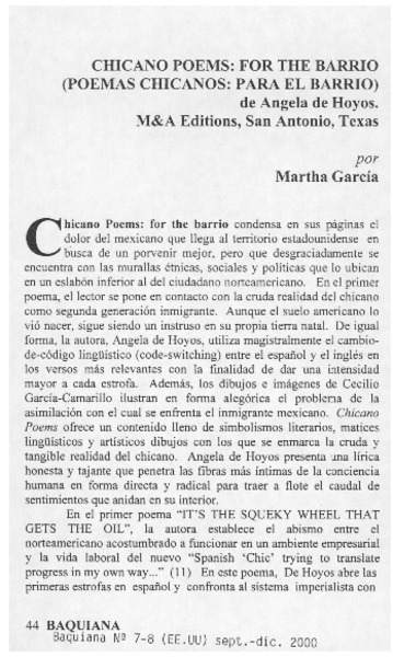 Poemas Chicanos: para el barrio - De Hoyos, Angela - Autoras estadounidenses