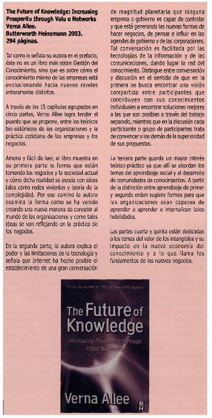 The future of Knowledge : Increasing Prosperitu through Valu e Networks Verna Alle [artículo]