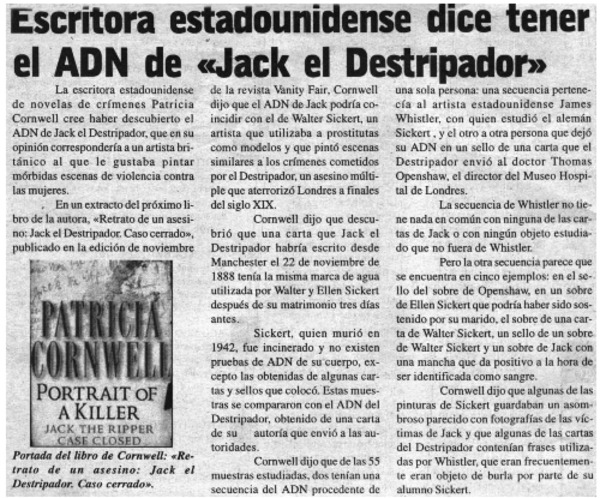 Escritora estadounidense dice tener el ADN de "Jack el destripador". [artículo]