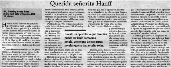 Querida señorita Hanff [artículo] Alejandro Zambra.