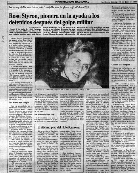 Rose Styron, pionera en la ayuda a los detenidos después del golpe militar. [artículo]