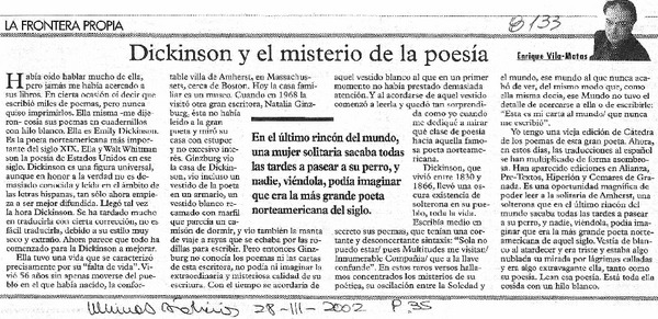 Dickinson y el misterio de la poesía [artículo] Enrique Vila-Matas.