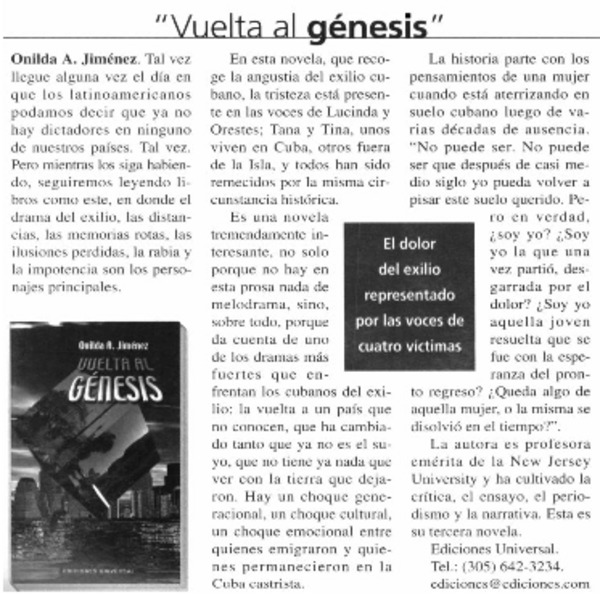 Autoras estadounidenses - Jiménez, Onilda A. - Vuelta al génesis