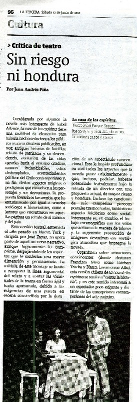 Sin riesgo ni hondura [artículo] Juan Andrés Piña.