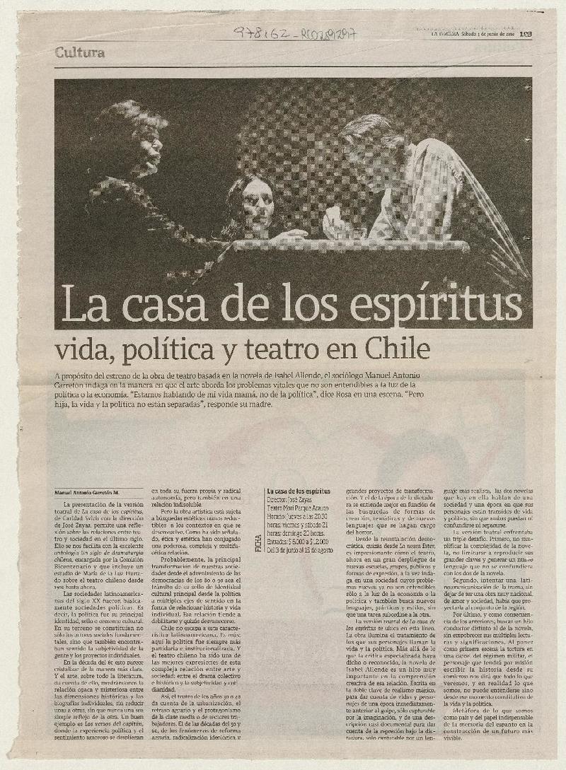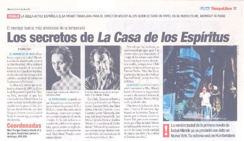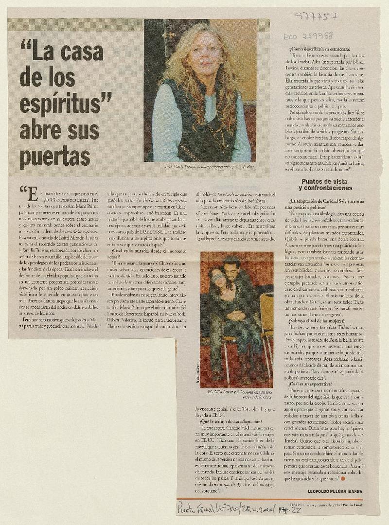 "La casa de los espíritus" abre sus puertas [artículo] Leopoldo Pulgar Ibarra.