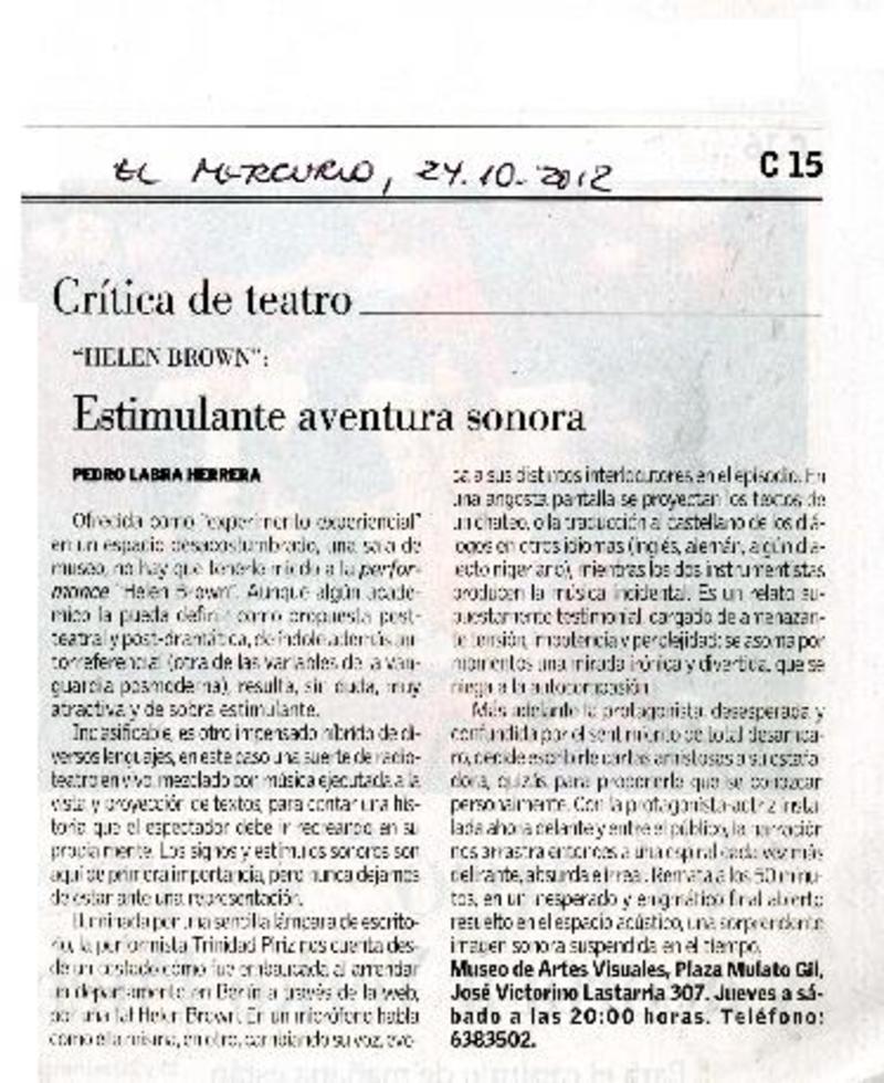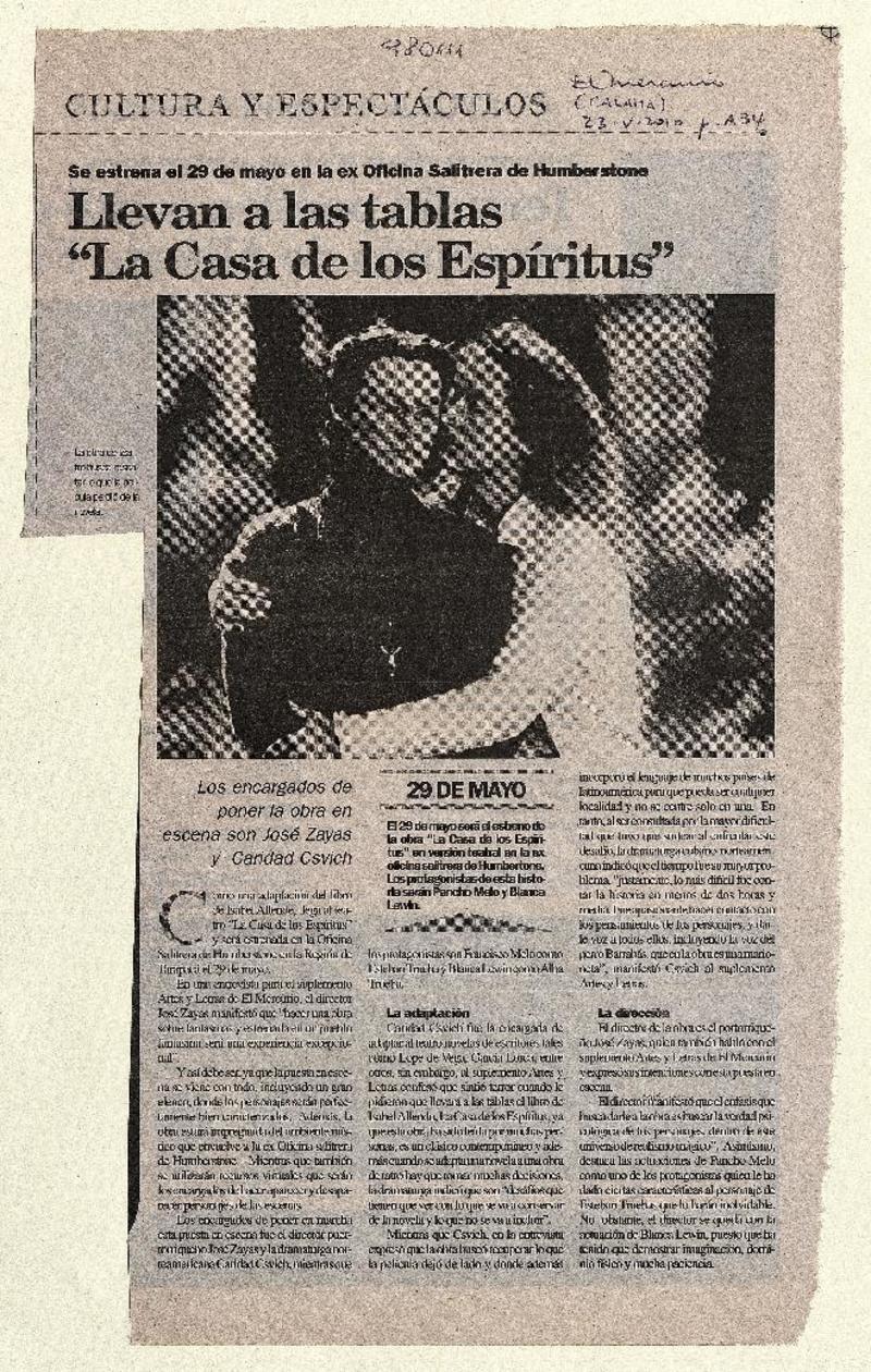 Versión teatral de La casa de los espíritus debuta en salitrera Humberstone [artículo] Rodrigo Miranda.