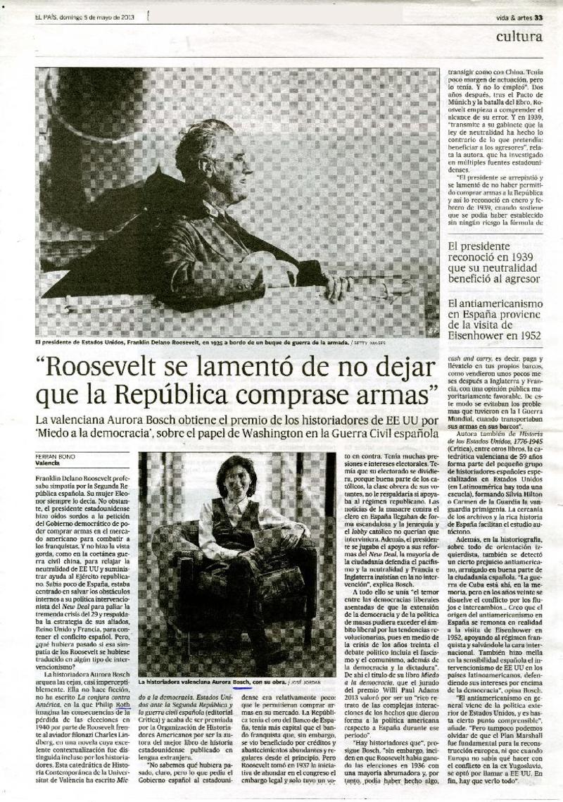 "Roosevelt se lamentó de no dejar que la República comprase armas" [artículo] Ferrán Bono.
