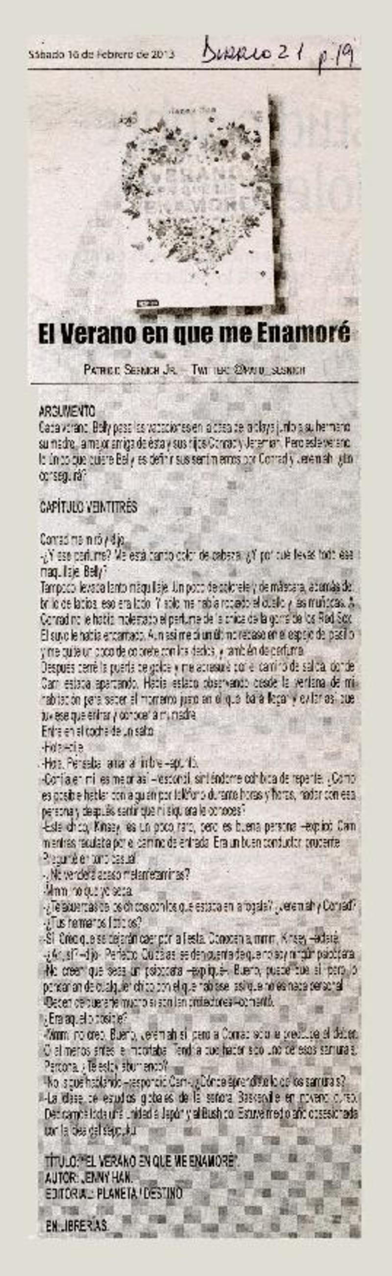 El verano en que me enamoré [artículo] Patricio Sesnich Jr.