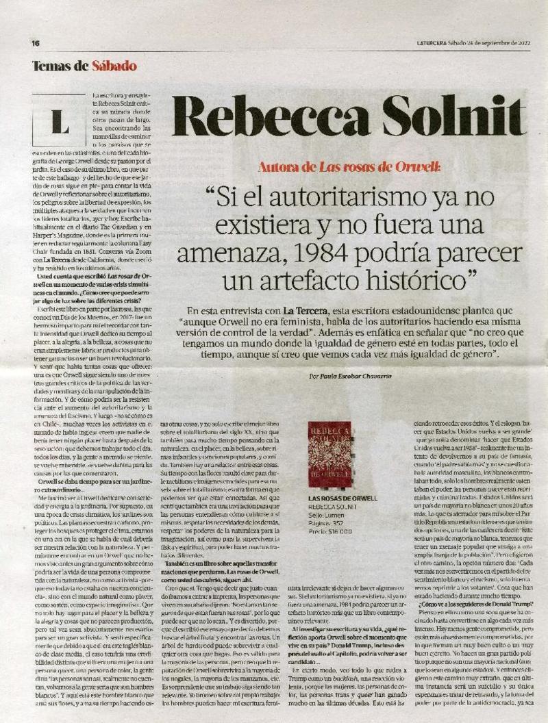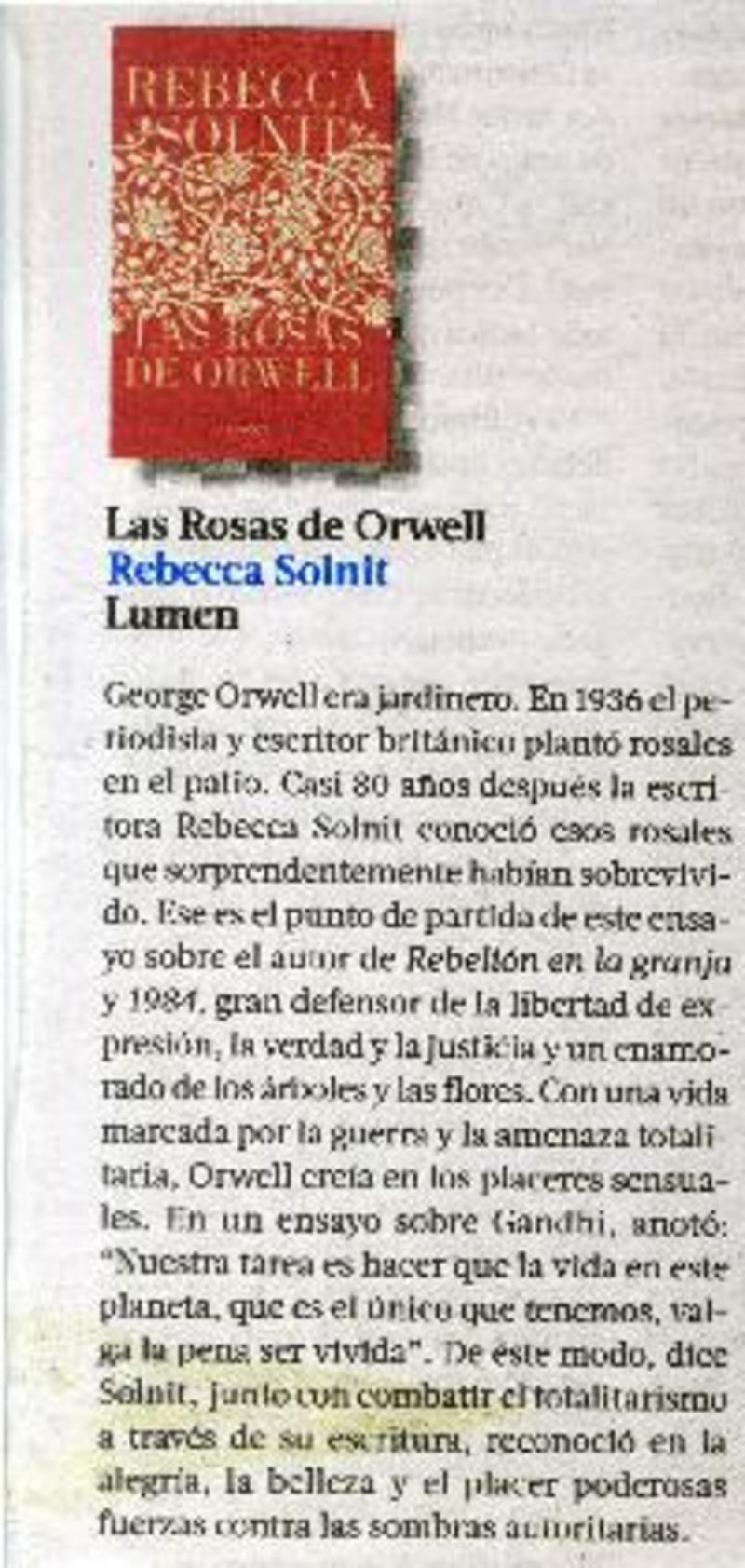 Entrevistas - Autoras estadounidenses - Solnit, Rebecca - Las rosas de Orwell
