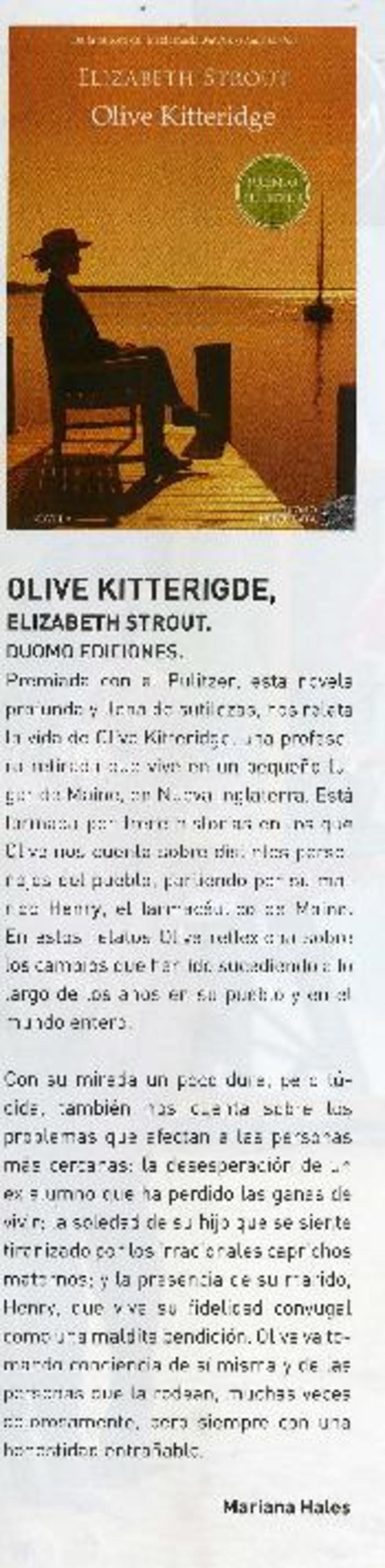 Olive Kitterigde, Elizabeth Strout [artículo] Mariana Hales.