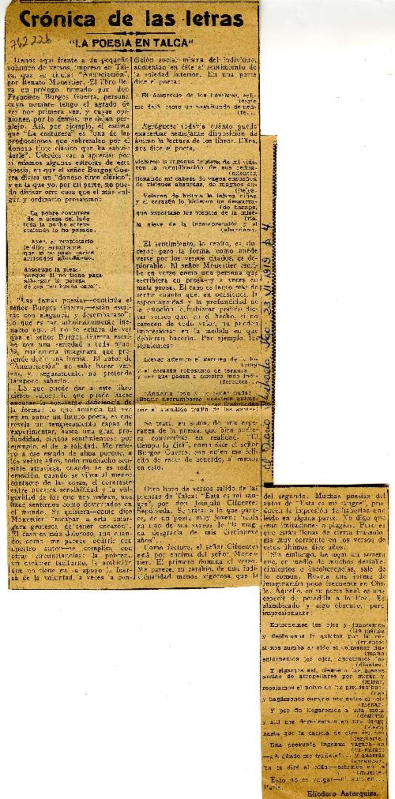 "La Poesía en Talca" [artículo] Eliodoro Astorquiza.