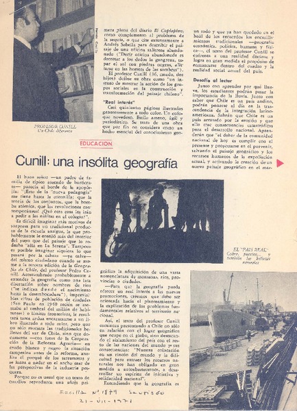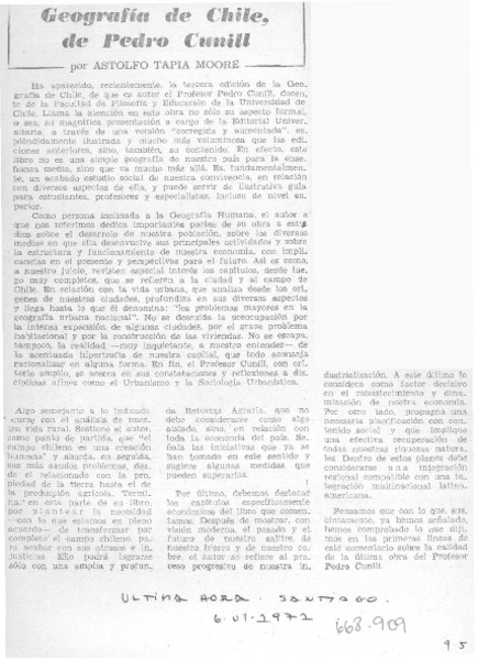 Geografía de Chile, de Pedro Cunill [artículo] Astolfo Tapia Moore.
