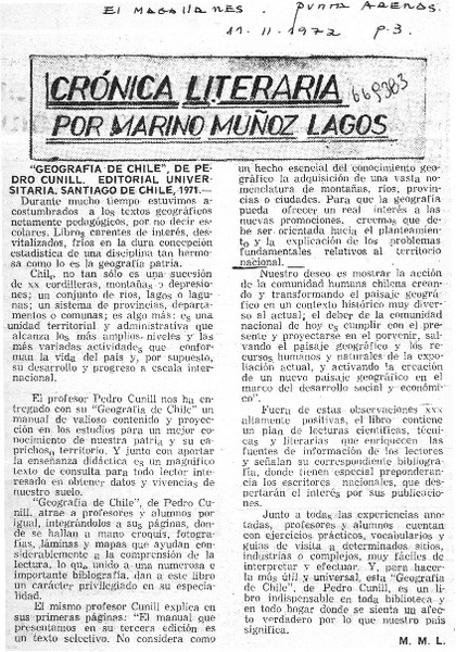 Geografía de Chile [artículo] Marino Muñoz Lagos.