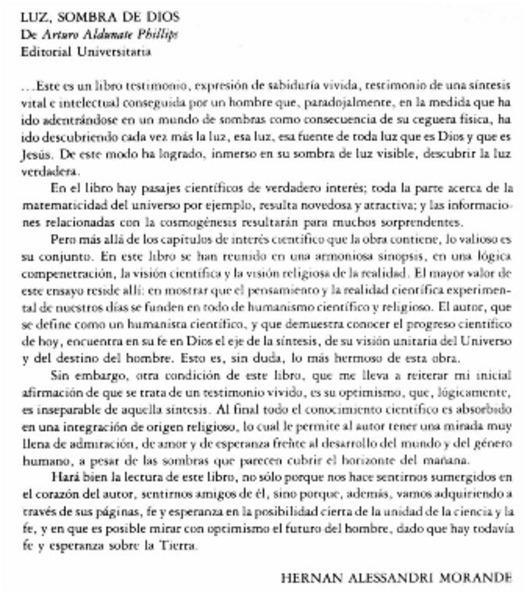 Aldunate Phillips, Arturo - Autores chilenos - Luz, sombra de Dios