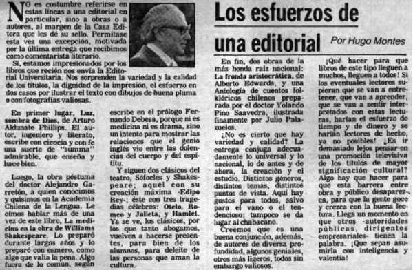 Los esfuerzos de una edtorial [artículo] Hugo Montes.