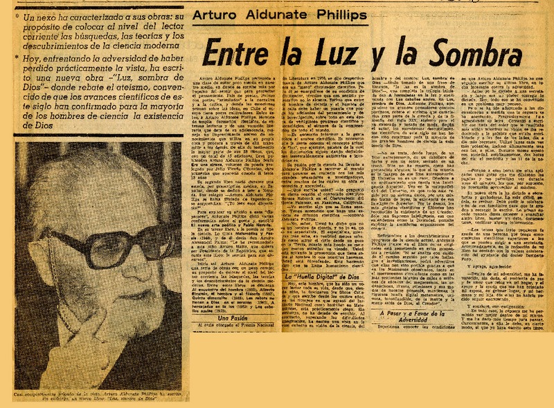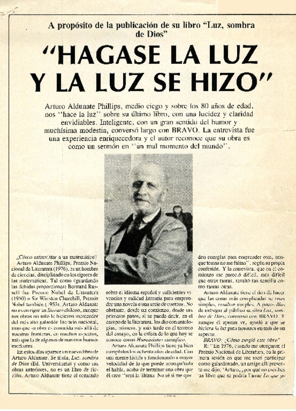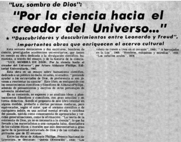 Autores chilenos - Luz, sombra de Dios - Aldunate Phillips, Arturo - Entrevistas