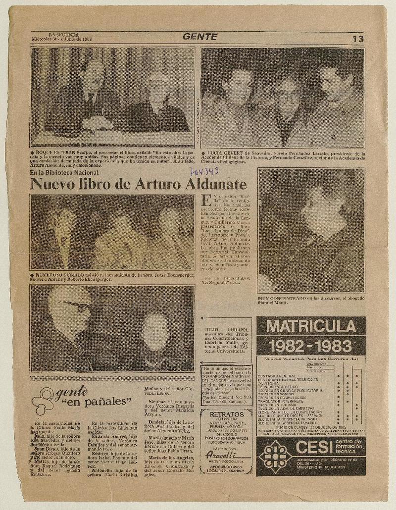 Nuevo libro de Arturo Aldunate P. [artículo]