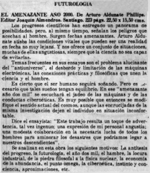 Aldunate Phillips, Arturo - Autores chilenos - Amenazante año 2000